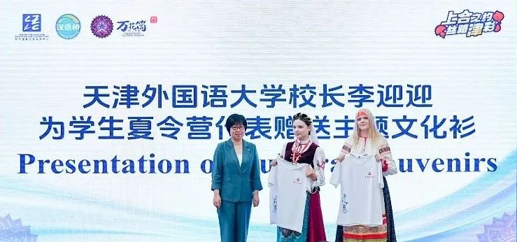 曲凱和李迎迎分別為團(tuán)組校長(zhǎng)和學(xué)生代表贈(zèng)送紀(jì)念“萬(wàn)花筒”文化衫。