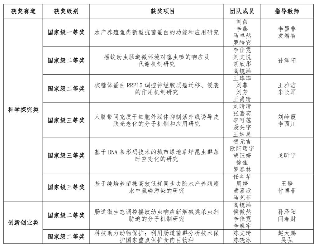 第十屆全國大學生生命科學競賽國家級獲獎名單