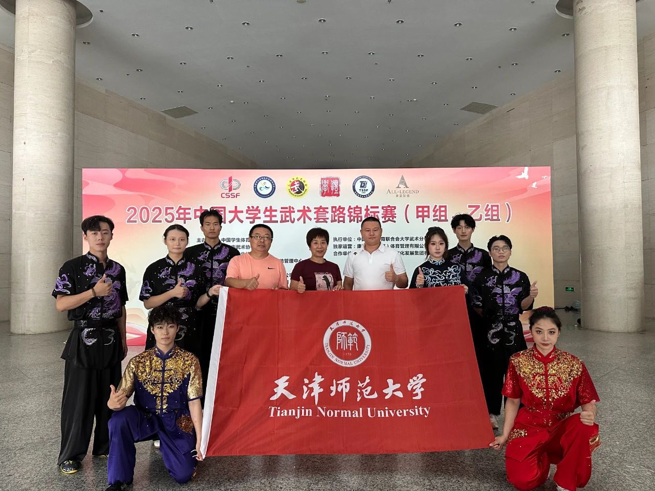 本屆賽事共有241所院校1200余名運動員參賽,創(chuàng)參賽人數(shù)歷史新高。天津師范大學(xué)武術(shù)隊經(jīng)過層層篩選,選派么佳玲(體育科學(xué)學(xué)院)、郭良佼(體育科學(xué)學(xué)院)、潘藝心(體育科學(xué)學(xué)院)、楊耀翔(體育科學(xué)學(xué)院)、劉璋奕潼(數(shù)學(xué)科學(xué)學(xué)院)、孫一銘(政治與行政學(xué)院)、黃玉陽(心理學(xué)部)、楊利偉(化學(xué)學(xué)院)8名運動員參加少林拳、查拳、形意拳、九節(jié)鞭、劍術(shù)、健身功法、集體器械等諸多項目的競賽,經(jīng)過激烈角逐,我校武術(shù)隊共收獲2金5銀1銅、1個第四名、1個第五名、1個第八名的優(yōu)異成績。