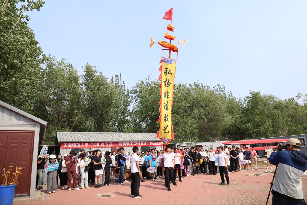 活動伊始,精彩絕倫的舞獅和中幡等非遺表演驚艷亮相。靈動的舞獅身姿矯健,在鼓點聲中翻騰跳躍,寓意吉祥如意;中幡表演者們則以精湛技藝,將沉重的中幡舞得上下翻飛、驚險迭出,引得現場觀眾陣陣驚嘆與喝彩。隨后,與會領導為龍舟點睛祈福,朱砂輕點,賦予龍舟以生命與活力,也寄托了對參賽隊伍的美好祝愿。