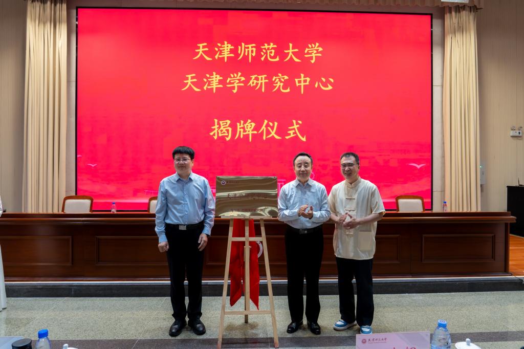 儀式上,天津學研究中心、古文獻與數字人文研究中心、教育教學實踐基地揭牌,并向首批兼職研究員頒發聘書。王振良教授、周余姣教授分別作中心成立報告。