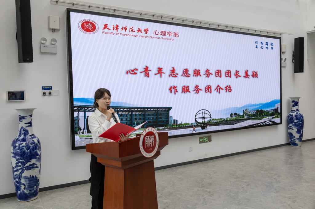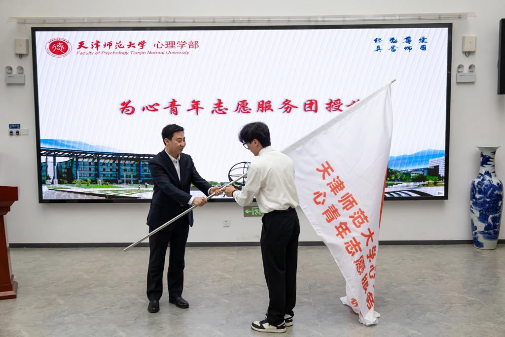 本站訊(通訊員 于海濤)5月8日下午,心理學(xué)部心青年志愿服務(wù)團(tuán)授旗儀式暨天津師范大學(xué)沈德立科學(xué)家精神宣講團(tuán)成立儀式在京津冀心理服務(wù)與社會治理中心一樓舉行。教育部高校學(xué)生司(高校畢業(yè)生就業(yè)服務(wù)司)副司長(掛職)肖琦、我校黨委副書記陳玳瑋出席。黨委教師工作部、黨委學(xué)生工作部、校友服務(wù)與管理中心、心理學(xué)部相關(guān)負(fù)責(zé)同志及師生校友代表參加活動。儀式由學(xué)部黨委副書記、紀(jì)委書記米溢主持。