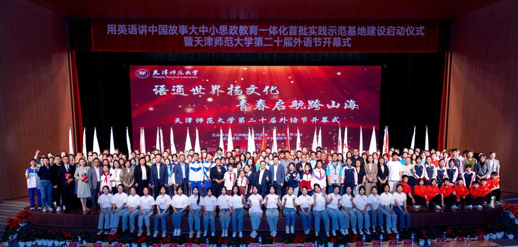本站訊(通訊員 陳乾坤)4月26日,由天津師范大學(xué)外國(guó)語(yǔ)學(xué)院與新航道天津?qū)W校聯(lián)合承辦的“用英語(yǔ)講中國(guó)故事”大中小思政教育一體化首批實(shí)踐示范基地建設(shè)啟動(dòng)儀式暨天津師范大學(xué)第二十屆外語(yǔ)節(jié)開(kāi)幕式舉行。新航道國(guó)際教育集團(tuán)副總裁、“用英語(yǔ)講中國(guó)故事大會(huì)”全國(guó)執(zhí)行總指揮張凡林出席活動(dòng)并致辭,我校黨委副書記陳玳瑋以視頻方式致辭。新航道國(guó)際教育集團(tuán)副總裁、新航道天津?qū)W校校長(zhǎng)雷豐奎,天津師范大學(xué)相關(guān)部門負(fù)責(zé)人、外國(guó)語(yǔ)學(xué)院領(lǐng)導(dǎo)班子全體成員,以及來(lái)自天津市基礎(chǔ)教育的首批10所示范實(shí)踐基地的師生代表500余人參加活動(dòng)。