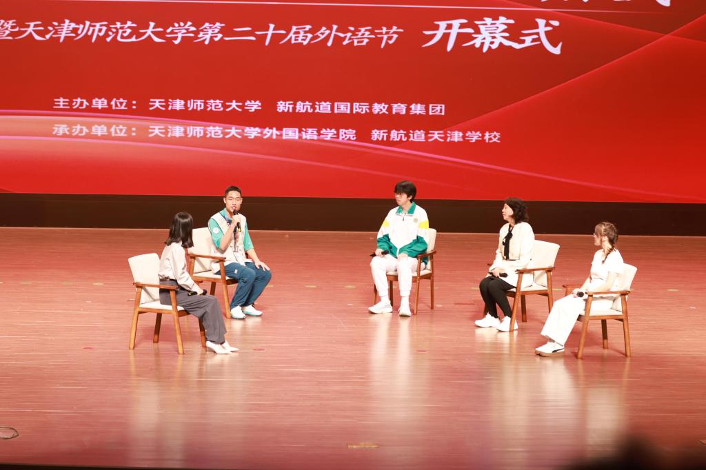 在訪談對(duì)話過(guò)程中,天津師范大學(xué)“用英語(yǔ)講中國(guó)故事”宣講團(tuán)團(tuán)長(zhǎng)張宏宇與中學(xué)生代表、家長(zhǎng)代表和外院優(yōu)秀志愿者代表共話育人使命和新時(shí)代的青年擔(dān)當(dāng)。通過(guò)分享每個(gè)人的經(jīng)歷和感悟,筑牢用青春之聲架起的跨文化交際堅(jiān)實(shí)橋梁。訪談內(nèi)容引起現(xiàn)場(chǎng)觀眾的共鳴:值此上海合作組織峰會(huì)即將在天津舉辦之際,時(shí)代賦予青年學(xué)生向世界展示中國(guó)青年風(fēng)采、傳播天津城市魅力的重要實(shí)踐舞臺(tái)。作為當(dāng)代青年,既要傳承“向世界展示中國(guó)”的初心使命,更要把握“生逢偉大時(shí)代”的歷史機(jī)遇。 現(xiàn)場(chǎng)觀眾跟隨訪談主持人一起回顧了天津師范大學(xué)外語(yǔ)節(jié)20載歲月中從初創(chuàng)的篳路藍(lán)縷,到如今的薪火相傳,帶著校友們的美好祝愿,現(xiàn)場(chǎng)數(shù)百名大中小學(xué)師生共同見(jiàn)證了天津師范大學(xué)第二十屆外語(yǔ)節(jié)拉開(kāi)帷幕。 外院學(xué)子身著蘇繡華服,手持手繪風(fēng)箏,在京劇唱腔中揮毫潑墨,在改編歌曲《下一場(chǎng)山海》中,將非遺創(chuàng)新推向高潮,通過(guò)傳統(tǒng)技藝與現(xiàn)代科技的碰撞,彰顯了文化傳承的青春力量。活動(dòng)最后,大中小學(xué)的3名學(xué)生代表一起表達(dá)了心聲,他們將懷揣著最初的夢(mèng)想,一起奔赴下一站山海,現(xiàn)場(chǎng)放飛的紙飛機(jī)載著大家共同的希望駛向遠(yuǎn)方。