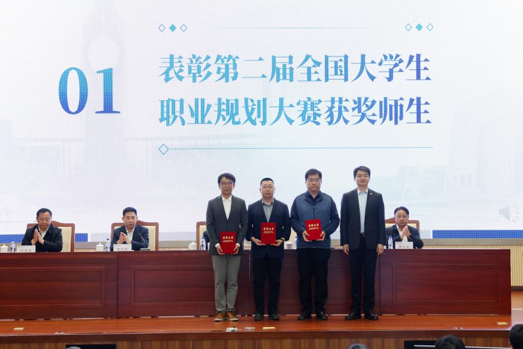 會上,校領導為第二屆全國大學生職業規劃大賽獲獎選手及指導教師代表頒發證書。計算機與信息工程學院2022級軟件工程專業本科生王佳雯、心理學部2021級應用心理學(師范)專業本科生曾芝程、政治與行政學院2023級政府治理與公共政策專業碩士研究生扈馨予依次上臺展示。教育學部、法學院、管理學院、美術與設計學院、計算機與信息工程學院主要負責同志圍繞學院典型特色做法進行交流發言。