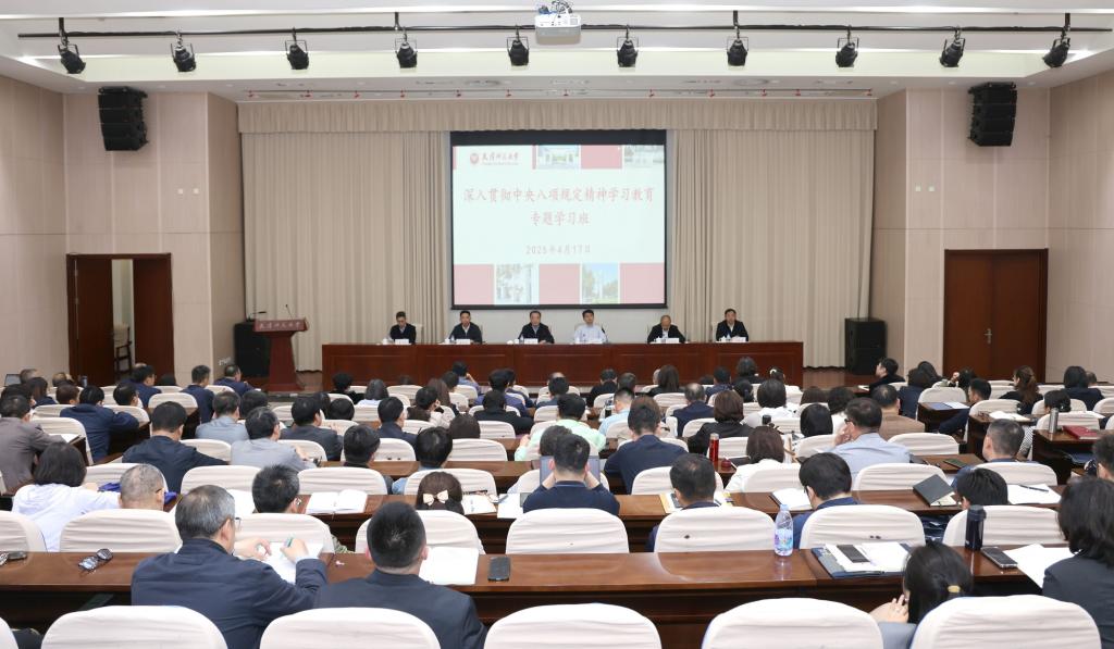 本站訊(通訊員 郭小瑋)4月17日下午,我校舉辦深入貫徹中央八項規定精神學習教育專題學習班,深入學習貫徹習近平總書記重要講話重要指示精神和中央八項規定及其實施細則精神。校黨委書記曲凱出席并講話,校黨委副書記、校長鞏金龍傳達近期中央黨的建設工作領導小組相關文件精神。專題學習班由校黨委副書記陳玳瑋主持,校領導班子成員、派駐紀檢監察組和學校處級干部參加。