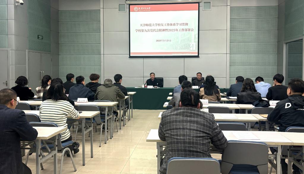 本站訊(通訊員 劉曉晨)3月21日下午,天津師范大學校友工作體系學習貫徹學校第九次黨代會精神暨2025年工作部署會在辦公樓多功能廳召開。校黨委常委、副校長紀德奎出席會議并講話,校友會與校友服務與管理中心工作人員、各學部(院)校友工作人員、校友支會代表、校友企業代表、校友聯絡員代表和學生校友社團代表參加會議。