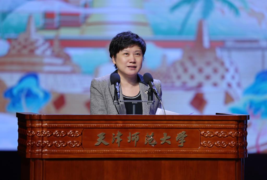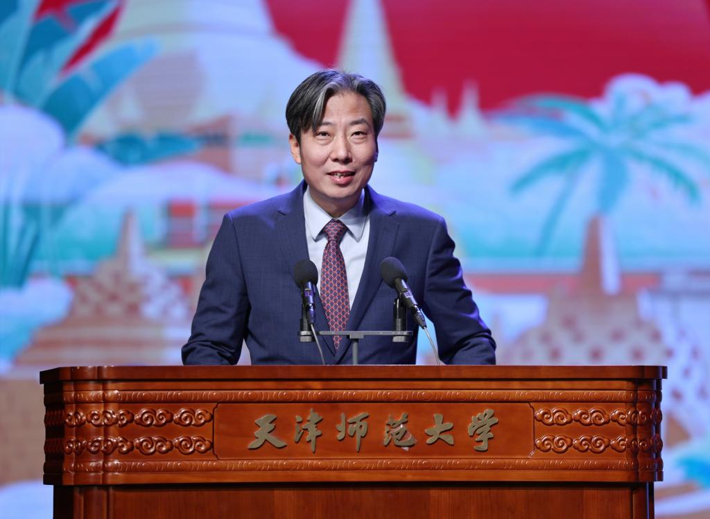 本站訊 3月19日,第二屆京津冀東盟國家學(xué)生“我與中國”中文故事視頻總展演活動在天津師范大學(xué)舉辦。本次活動主題為:語合越山海 心橋向未來。天津市副市長張玲,教育部中外語言交流合作中心黨委書記、主任郁云峰,中國—東盟中心秘書長史忠俊,中國教育國際交流協(xié)會秘書長楊軍出席活動。泰國、老撾、印尼、馬來西亞、越南、文萊、柬埔寨、菲律賓等東盟國家駐華大使館使節(jié)參加活動。京津冀教委(教育廳)、承辦學(xué)校北京外國語大學(xué)、河北師范大學(xué)、天津師范大學(xué)負責(zé)同志以及我市各相關(guān)高校負責(zé)同志;各區(qū)政府負責(zé)同志、各區(qū)教育局主要負責(zé)同志、市教委直屬學(xué)校主要負責(zé)同志,東盟10國學(xué)生代表以及京津冀東盟國家?guī)熒淼惹в嗳藚⒓印?/p>