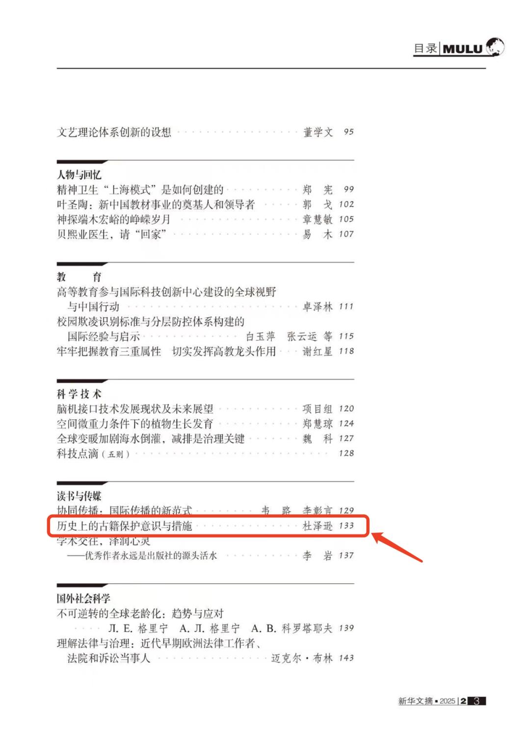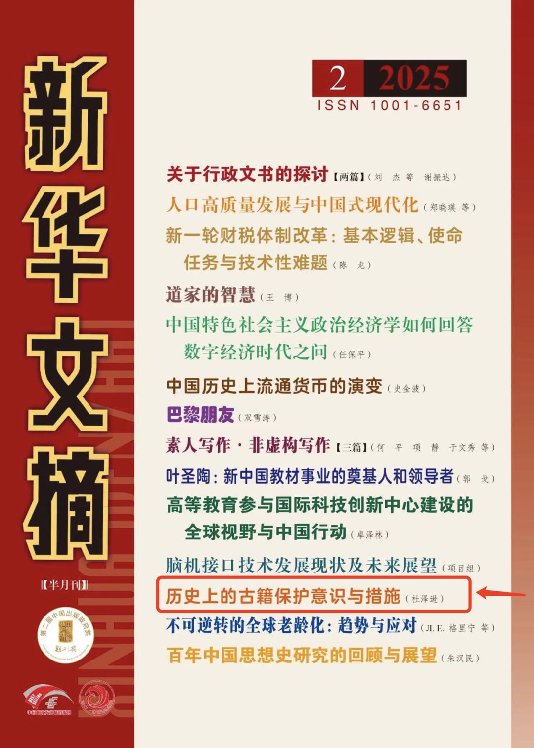 本站訊(通訊員 張珵)近日,《天津師范大學學報(社會科學版)》(以下簡稱學報社科版)2024年第5期發表的《歷史上的古籍保護意識與措施》(作者:杜澤遜 特約編輯:周余姣 責任編輯:李連義)一文,被《新華文摘》2025年第2期全文轉載,并榮登當期封面目錄。此次轉載不僅是對作者學術成就的高度認可,更是對我校學報辦刊質量和學術影響力的有力肯定。