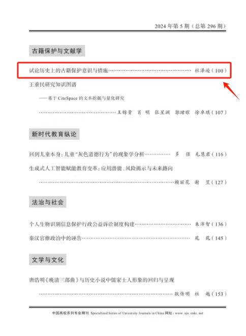 《歷史上的古籍保護意識與措施》深入剖析了我國古代先民強烈的古籍保護意識,系統梳理了古代為保護古籍所采取的防災措施、管理辦法、原生性保護措施和古籍再生手段。這些內容不僅對研究古籍保護史具有重要的學術價值,更為當下的古籍保護工作提供了寶貴的歷史借鑒。文章作者憑借深厚的學術功底和對古籍保護領域的深入洞察,為學界呈現了一篇頗有見地的文章,也為我校學報贏得了廣泛的贊譽。