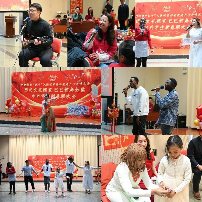 乙巳蛇年春節是“春節”申遺成功后的首個春節。聯歡活動特邀“曾氏華服”曾氏津派盤扣技藝非遺傳承人邢晉,帶領中外學生現場領略盤扣藝術,體驗春節的文化習俗。此外,活動還設置了書法體驗、新春福卡制作、游戲互動、歌舞才藝表演環節,中外學子在歡聲笑語和濃厚的節日氛圍中共度難忘時光。