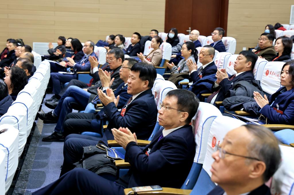 陳輻寬代表市委、市委教育工委對大會召開表示祝賀,對學校第八次黨代會以來的工作表示充分肯定,希望學校緊緊抓住大有可為的歷史機遇期,全面加強黨的領(lǐng)導,堅守立德樹人根本任務(wù),著力推進內(nèi)涵式發(fā)展,打造高質(zhì)量師資隊伍,深化改革開放,為教育強國和教育強市建設(shè)、為譜寫中國式現(xiàn)代化天津篇章作出新的更大貢獻。