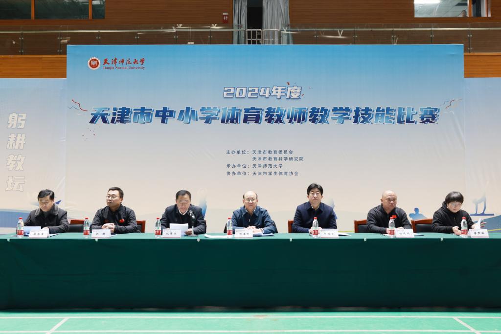 本站訊(通訊員 呂天宇)為貫徹落實全國教育大會精神,加強天津市中小學體育教師隊伍建設,展示中小學體育教師的教學技能和綜合素質,1月11日、12日,2024年度天津市中小學體育教師教學技能比賽在我校隆重舉辦。本次比賽由天津市教育委員會、天津市教育科學研究院主辦,天津師范大學承辦,天津市學生體育協會協辦。天津市教育委員會副主任郝奎剛,天津師范大學黨委常委、副校長紀德奎,以及天津市教委體美勞教育處、天津市學生體育協會、我校有關同志參加開幕式。