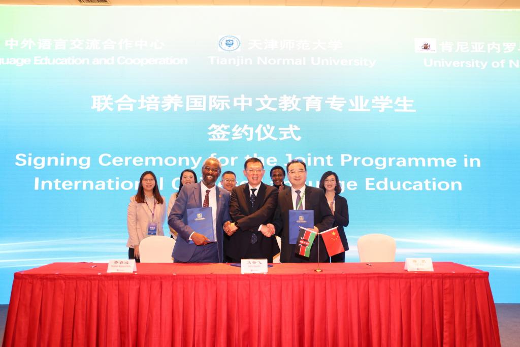 教育部語合中心、天津師范大學(xué)和內(nèi)羅畢大學(xué)在2023年世界中文大會上簽署國際中文教育專業(yè)聯(lián)合培養(yǎng)協(xié)議