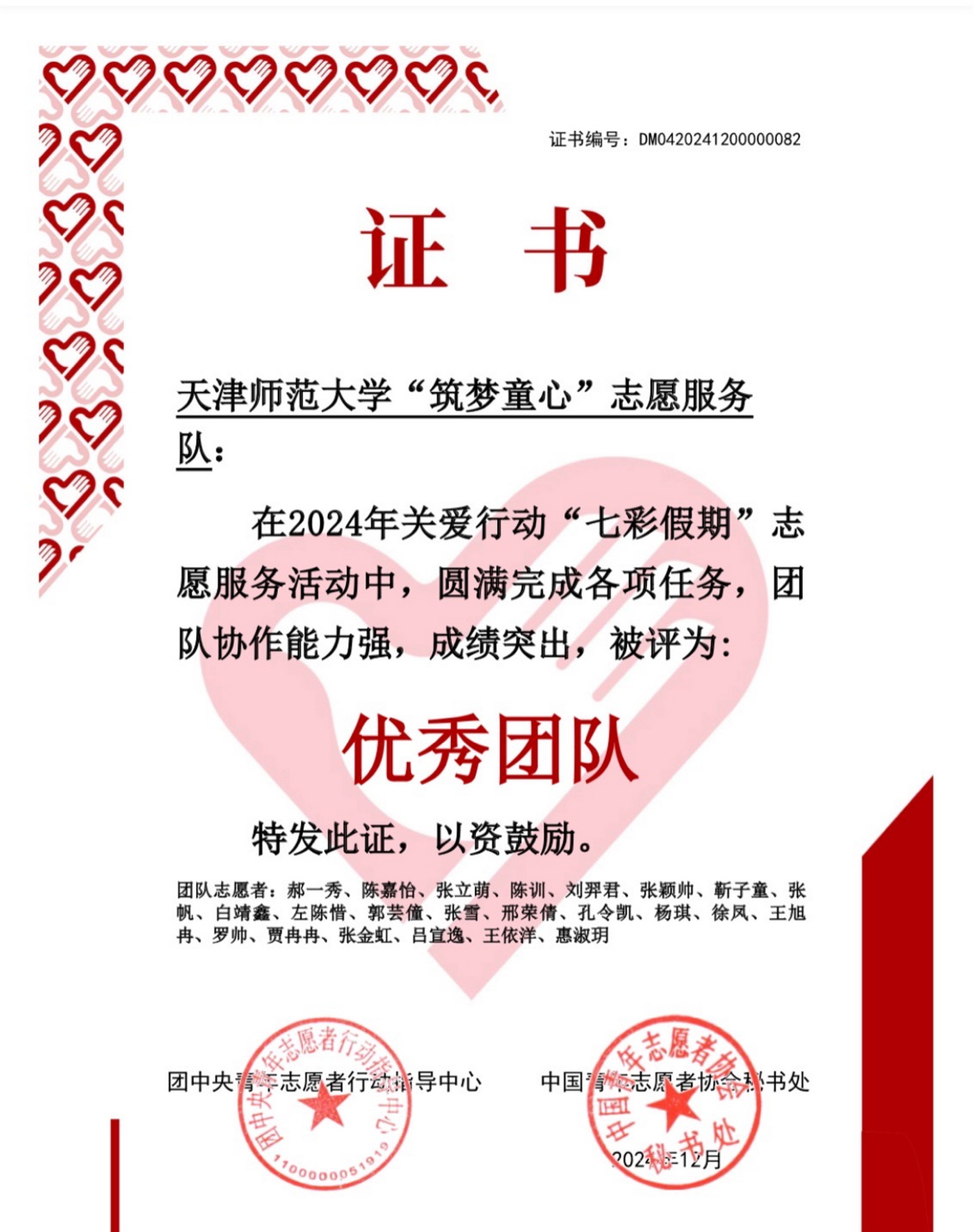 本站訊(通訊員 武夢瑋)近日,團中央青年志愿者行動指導中心、中國青年志愿者協會秘書處公布了2024年關愛行動“七彩假期”志愿服務活動優秀團隊名單,我校“筑夢童心”志愿服務隊從全國2000支隊伍中脫穎而出,獲評“優秀團隊”。