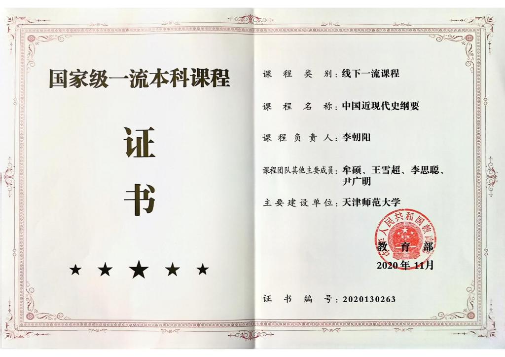 “中國近現(xiàn)代史綱要”獲國家級一流本科課程