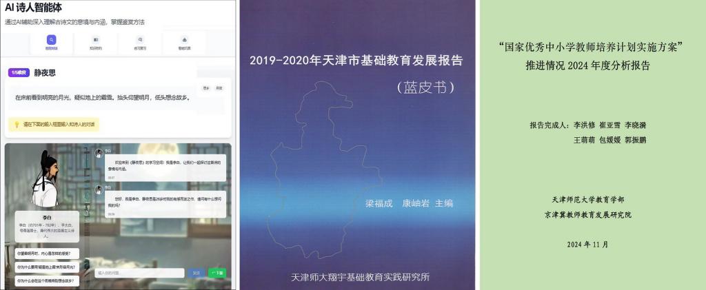在成果匯報與展示環節,天津師范大學教育學部王麗蕊博士和一線教師共同展示由天津師范大學服務基礎教育團隊研發的AI智能體的生成性問題引導、智能情境交互等功能。天津師范大學教育學部教授吳立寶介紹了翔宇基礎教育實踐研究所編制的系列《天津市基礎教育發展報告(藍皮書)》和相關應用成果。“萬人計劃”青年拔尖人才、天津師范大學教育學部教授李洪修介紹了京津冀教師教育發展研究院在服務國家教師教育高質量發展、服務天津教育強市、做好教育家精神理論闡釋等方面的研究成果。