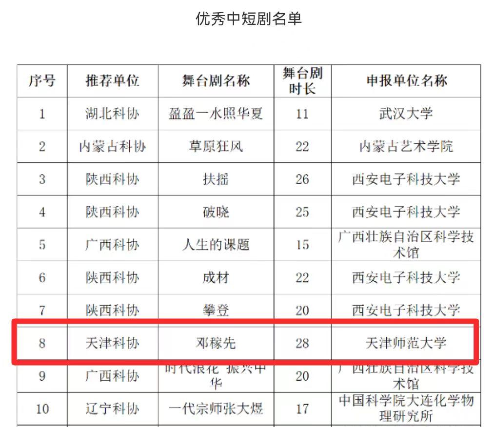 本站訊(通訊員 郝健強(qiáng) 趙逸浩)近日,中國(guó)科協(xié)2024年度“科學(xué)家故事舞臺(tái)劇推廣行動(dòng)”名單公布,天津師范大學(xué)物理與材料科學(xué)學(xué)院原創(chuàng)舞臺(tái)劇《鄧稼先》入選優(yōu)秀中短劇推廣名單,是2024年天津市高校唯一入選的劇目。