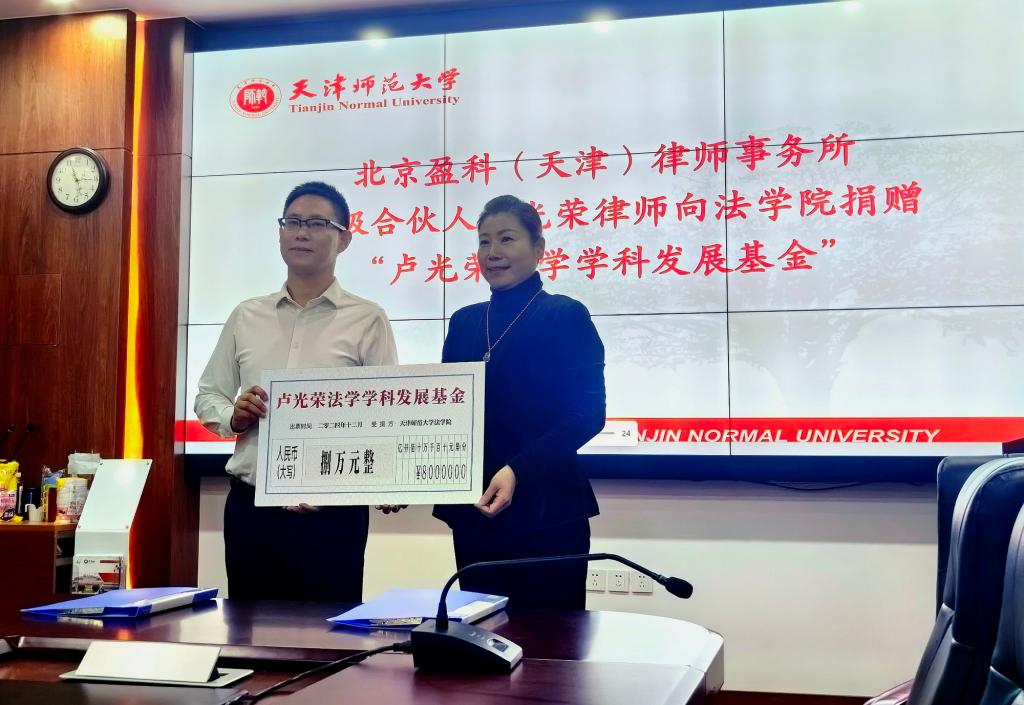 本站訊(通訊員 侯慧秀)12月26日,法學(xué)院在澍澤報告廳舉辦“盧光榮法學(xué)學(xué)科發(fā)展基金”捐贈儀式。紀(jì)委監(jiān)委駐天津師范大學(xué)紀(jì)檢監(jiān)察組組長徐興云,校黨委常委、副校長白學(xué)軍,北京盈科(天津)律師事務(wù)所高級合伙人盧光榮、律師楊瑜,我校相關(guān)部分負責(zé)同志、法學(xué)院領(lǐng)導(dǎo)班子及教師代表參加捐贈儀式。