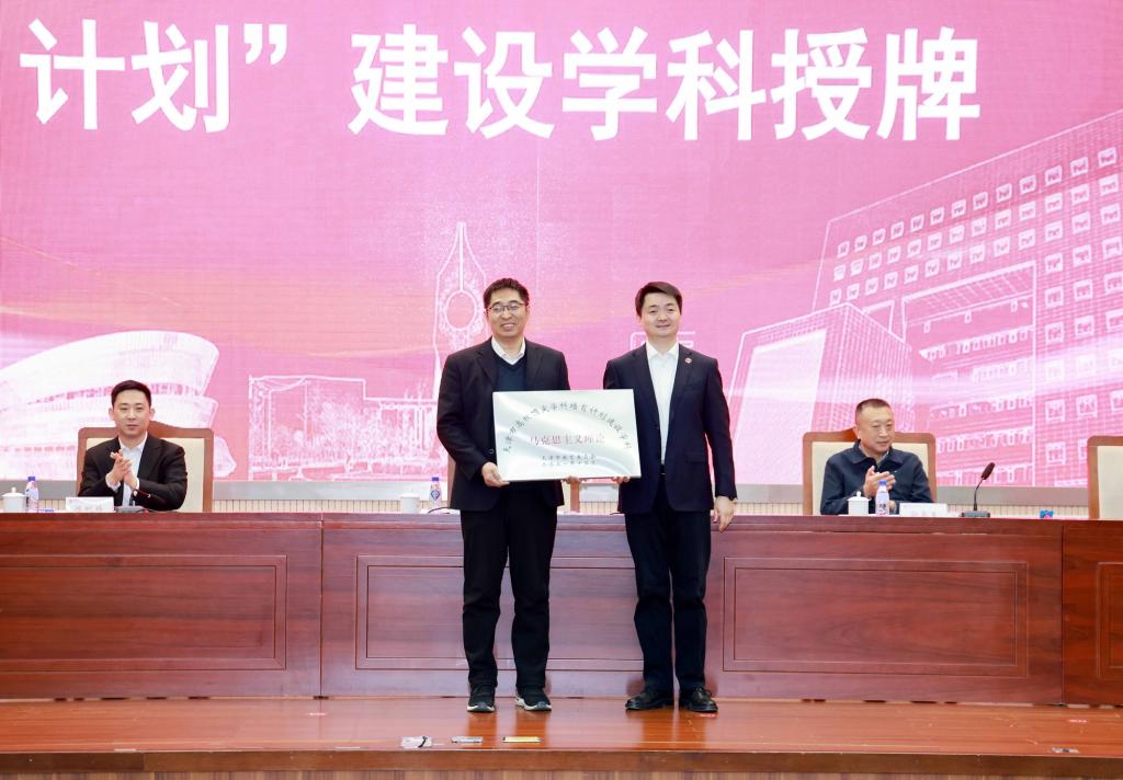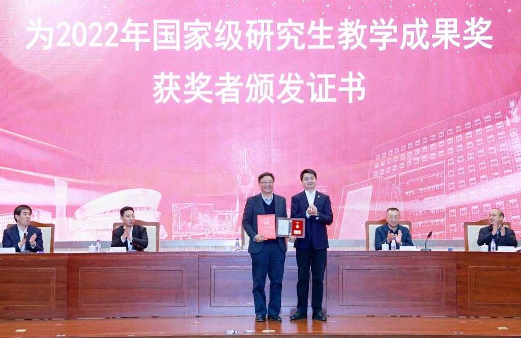 學校表彰在學科建設和研究生教育工作中取得重要成果的單位和個人。與會領導為2020、2024年新獲批的博士學位授權點和“天津市頂尖學科培育計劃”建設學科授牌,為2022年國家級、市級研究生教學成果獎獲獎者、天津市優秀青年研究生指導教師、天津市優秀學位論文指導教師頒發證書。相關學科帶頭人遞交《學科建設任務書》《學位點建設任務書》。研究生培養單位代表、研究生導師代表分別作典型發言。