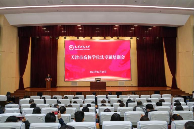 本站訊(通訊員 徐梅芳)12月24日,為深入學習《中華人民共和國學位法》,提升學位管理工作規范化、法治化水平,增強教育從業者法律素養與業務能力,全面推進《學位法》落地落實,由天津市教委、天津師范大學共同舉辦的《學位法》專題培訓會暨新聘任研究生指導教師培訓會在會議中心大報告廳召開。天津師范大學黨委常委、副校長佟德志、市教委科學技術與研究生工作處處長楊明海,天津市各高校代表、科研院所法制處代表,我校研究生院、教務處及各培養單位負責同志400余人參加活動。中國學位與研究生教育學會副會長兼學術委員會副主任、教育部高等教育教學評估中心原副主任、北京理工大學研究生教育研究中心主任王戰軍教授受邀作專題報告。