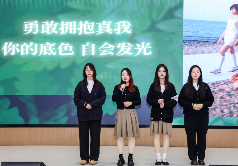 在頒獎典禮上,我校新聞傳播學(xué)院全國一等獎學(xué)生團隊重現(xiàn)國賽風(fēng)采,現(xiàn)場展示策劃案《底色,自會發(fā)光》提案。作品以獨特的創(chuàng)意理念和精準(zhǔn)的市場洞察力,充分展現(xiàn)了我校學(xué)生扎實的專業(yè)功底與卓越的創(chuàng)新能力,贏得了在場嘉賓的高度評價與熱烈掌聲。