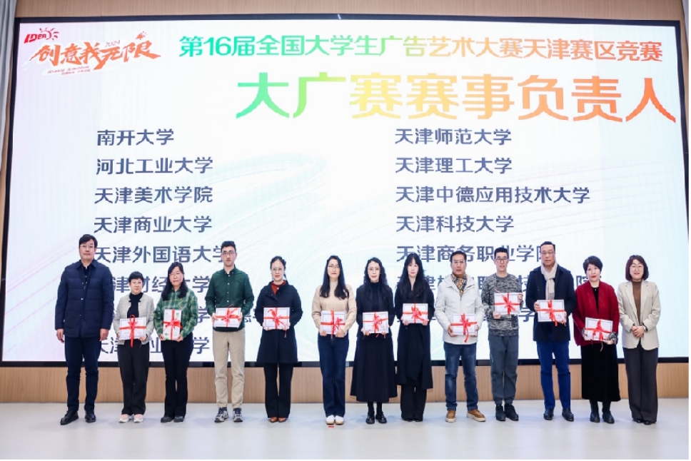 本站訊(通訊員 高宇)12月19日下午,第16屆全國大學(xué)生廣告藝術(shù)大賽天津賽區(qū)競賽頒獎典禮在天開高教科創(chuàng)園(核心區(qū))大報告廳舉行。全國大學(xué)生廣告藝術(shù)大賽組委會秘書長劉瑞武,天津師范大學(xué)黨委宣傳部部長潘暉、教務(wù)處處長豐向日,天津市教育委員會高教處張必蘭出席活動,天津師范大學(xué)新聞傳播學(xué)院有關(guān)負(fù)責(zé)同志,京津兩地知名廣告人及來自天津30余所高校的獲獎師生300余人參加活動。