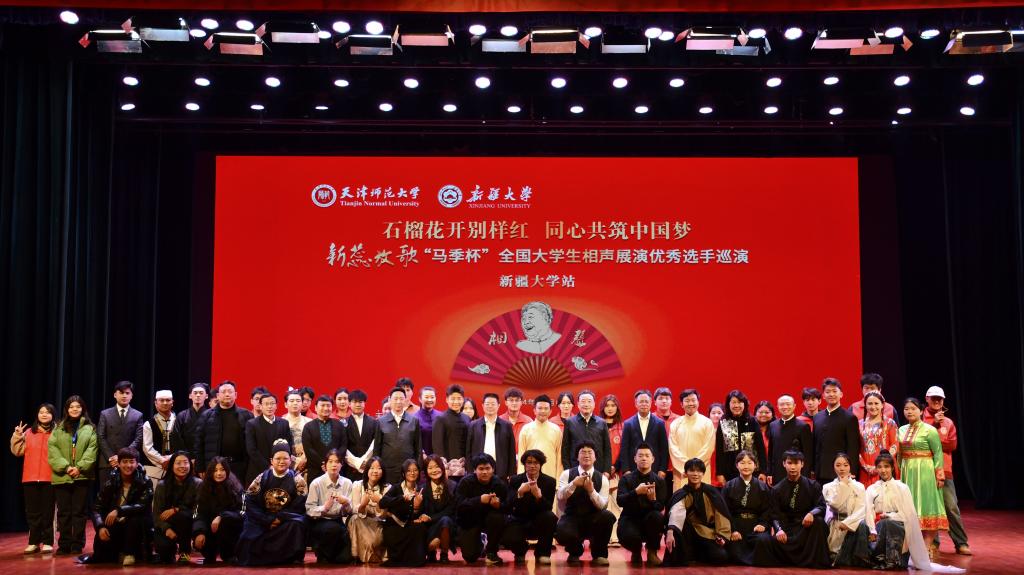 在“石榴花開別樣紅,同心共筑中國夢”——新蕊放歌“馬季杯”全國大學生相聲展演優秀選手巡演新疆大學站活動中,歷屆“馬季杯”獲獎選手代表相繼登臺,通過相聲這一傳統與現代交融的藝術形式,深化文化交流。本次活動由天津師范大學、新疆大學共同主辦,我校馬季藝術研究會、全國普通高校中華優秀傳統文化(相聲)傳承基地承辦,也是新蕊放歌“馬季杯”全國大學生相聲展演優秀選手巡演首次到西部地區開展活動,為當地師生帶來一場視聽盛宴,打造了一堂生動的大學生“思政大課堂”,讓其近距離感受優秀傳統文化的獨特魅力,激勵大家共同書寫中華民族多元一體、團結進步的新篇章。
