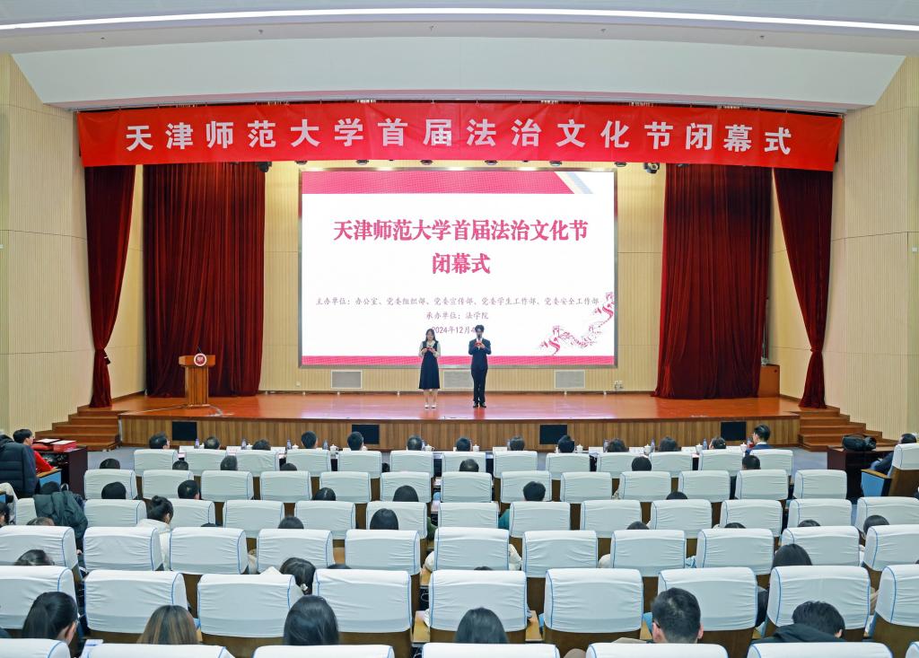 本站訊(通訊員 侯慧秀)今年12月4日是第十一個(gè)“國(guó)家憲法日”,我校在會(huì)議中心大報(bào)告廳舉辦首屆法治文化節(jié)閉幕式,我校黨委常委、副校長(zhǎng)陳玳瑋,天津市教育委員會(huì)法制處處長(zhǎng)邢建濤,天津市河?xùn)|區(qū)人民檢察院黨組副書記、副檢察長(zhǎng)高婕,北京盈科(天津)律師事務(wù)所管委會(huì)主任盧光榮,天津孚惠律師事務(wù)所執(zhí)行主任狄妍,天津法官學(xué)院講師杜洪洲受邀出席活動(dòng),辦公室、黨委組織部、黨委宣傳部、黨委學(xué)生工作部、黨委安全工作部、法學(xué)院等主辦和承辦單位負(fù)責(zé)同志,各學(xué)部、學(xué)院黨委副書記以及全校300余名學(xué)生代表參加活動(dòng)。