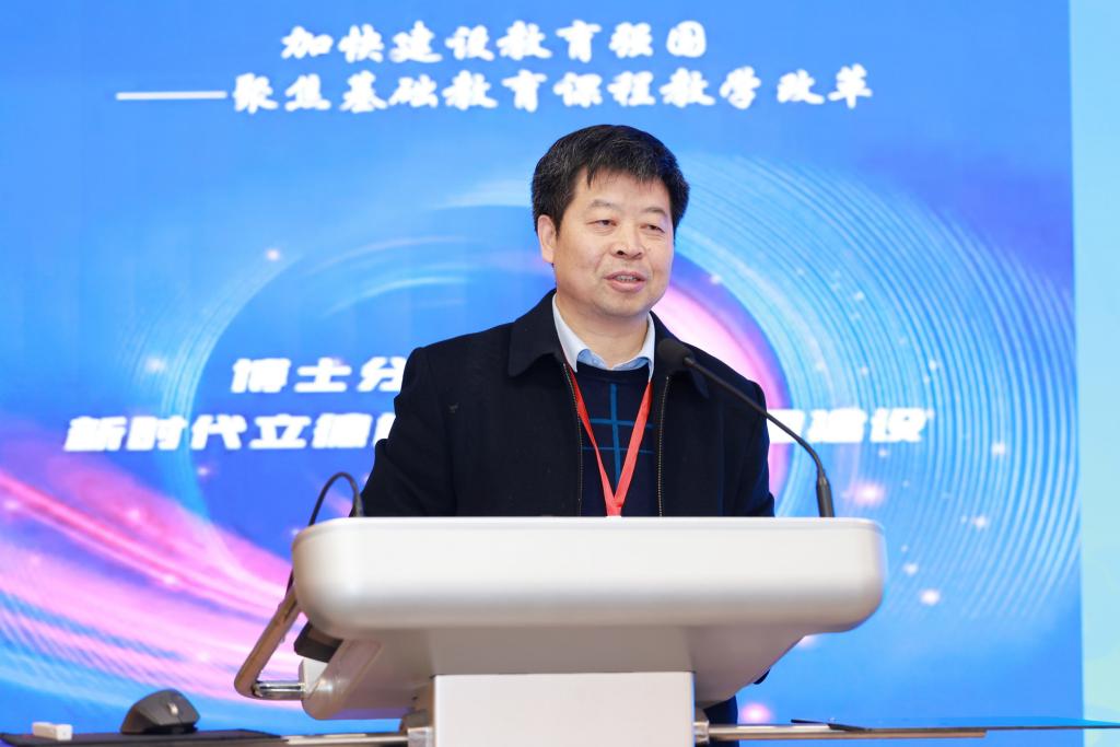 馮建軍在致辭中表示,習近平總書記在全國教育大會上指出,要堅持不懈用新時代中國特色社會主義思想鑄魂育人,實施新時代立德樹人工程。教育是國之大計、黨之大計,教育工作要全面貫徹黨的教育方針,把立德放在人才培養首位,遵循教育規律和人才成長規律,不斷健全全員育人、全過程育人、全方位育人的體制機制,大力培養德智體美勞全面發展的社會主義建設者和接班人。“國無德不興,人無德不立”,育人的根本在于立德。本次博士分論壇的主題是“新時代立德樹人與教育強國建設”,就是要進一步全面貫徹落實全國教育大會精神,準確理解和把握立德樹人與教育強國建設的關系,深入探討立德樹人的內涵,提出系統化的落實機制。作為學者、教育者,要高度重視立德樹人與教育強國建設的雙向互動,以實際行動做立德樹人的能者、強者和教育強國的研究者、實踐者。