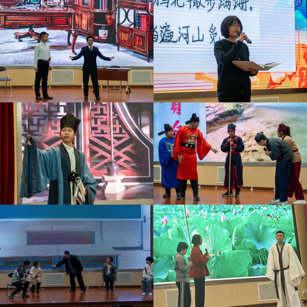 經過初賽選拔,共有來自我市6所高校的6支代表隊晉級決賽比拼。在決賽的“律詩展示”環節,各代表隊分別展示以指定素材創作的七言律詩,展現出選手們扎實的格律詩功底;隨后進行的“經史論議”環節,各隊選手要在作品中引用三條“四書”原文,并結合歷史人物或歷史事件,引經析義、引史議論,不僅展示了參賽選手對人文知識的深度理解,還考驗選手運用人文知識解決現代化治理的能力;在“人文演繹”環節,各代表隊則通過學生們自編自導自演的原創短劇,全面展現參賽選手的人文知識水平和綜合運用能力。廣博的知識、出眾的口才、精彩的表演,深深地打動了觀眾,為大家上了一堂生動的人文知識素養大思政課。