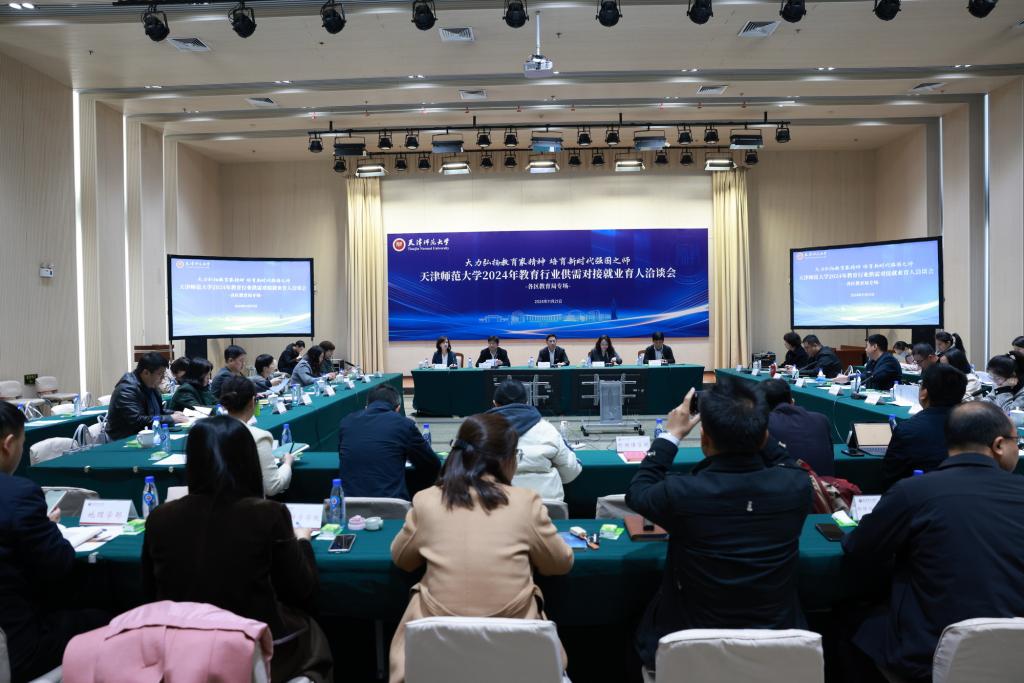 本站訊(通訊員 楊晨)為全面貫徹黨的二十屆三中全會精神和全國教育大會精神,落實《中共中央辦公廳 國務院辦公廳關于加快構建普通高等學校畢業生高質量就業服務體系的意見》要求,完善高校學科設置調整機制和人才培養模式,促進我校2025屆畢業生高質量充分就業,11月21日上午,我校舉辦2024年教育行業供需對接就業育人洽談會。全市各區教育局分管人事工作的副局長、人事科長應邀參加活動。天津師范大學黨委常委、副校長陳玳瑋出席會議并講話。學生工作部、教務處、繼續教育學院(基礎教育服務中心)、學生就業服務中心主要負責同志及相關學院黨委副書記參加會議。