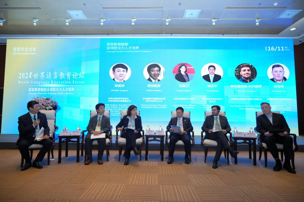 16日下午,鐘英華受邀出席主持世界中文大會“2024世界語言教育論壇”。教育部中外語言交流合作中心副主任胡志平及來自日本、法國、阿根廷、德國等代表就語言文化推廣應用情況進行交流分享。