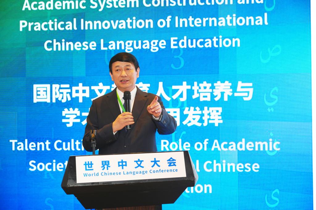 16日上午,鐘英華出席“國際中文教育學術體系構建與實踐創新研討會”,作《世漢學會助力國際中文教育人才隊伍建設發展》專題報告,分享了世界漢語教學學會從組織建設、標準發布、課題研究、學術會議、專欄建設、核心目錄、專技評價等方面系統構建的情況和產生的成效。