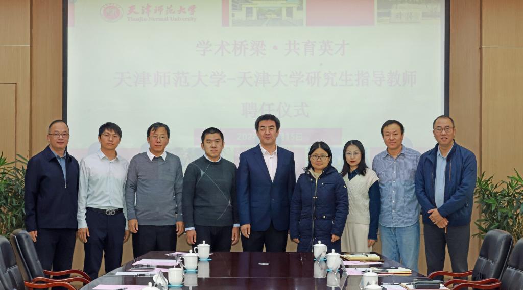 本站訊(通訊員 徐梅芳 林勍)11月15日下午,天津師范大學(xué)與天津大學(xué)“學(xué)術(shù)橋梁·共育英才”研究生指導(dǎo)教師聘任儀式在辦公樓第一會(huì)議室召開。校黨委常委、副校長佟德志出席聘任儀式,學(xué)校辦公室、科技處、合作交流處、數(shù)學(xué)科學(xué)學(xué)院、物理與材料科學(xué)學(xué)院、電子與通信工程學(xué)院、化學(xué)學(xué)院、生命科學(xué)學(xué)院、地理學(xué)部、計(jì)算機(jī)與信息工程學(xué)院等部門及學(xué)部(院)相關(guān)負(fù)責(zé)人參會(huì),研究生院常務(wù)副院長王為主持會(huì)議。