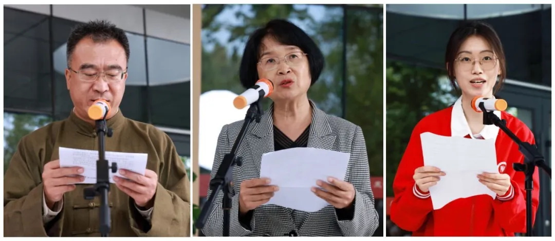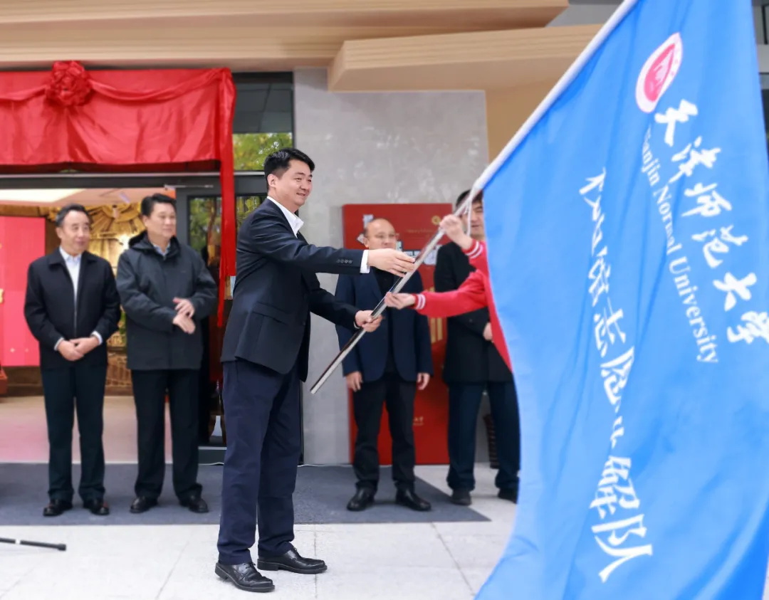 儀式現場,鞏金龍手執“校史館志愿講解隊”隊旗,親自授予講解隊負責人。古籍保護研究院王振良研究員作為教師代表發言,他表示,校史館建成開放為研究天津教育史特別是師范教育史提供了豐裕資料,將帶領學生投入更多精力關注校史研究,深入挖掘背后的精神價值和深遠意義,助力校史館建設成感受師大文化和師大精神的堅強陣地。飲水思源,作為我校優秀校友代表,侯立瑛深切感謝母校栽培,她談道,校史館是連接校友與母校的橋梁,館內珍藏的照片和物件承載校友們的青春歲月,校史館將成為校友的精神家園和在校師生前行的燈塔,將密切關注母校的建設和發展,祝愿母校宏圖更展再譜華章。志愿講解隊隊長、文學院漢語言文學專業2201班時藝菲同學代表校史館志愿講解隊發言。她表示,講解隊將充分利用校史資源,扎實提高講解能力,持續優化講解內容,主動擔當起傳播校史文化的使命,為傳承師大精神貢獻青春力量。