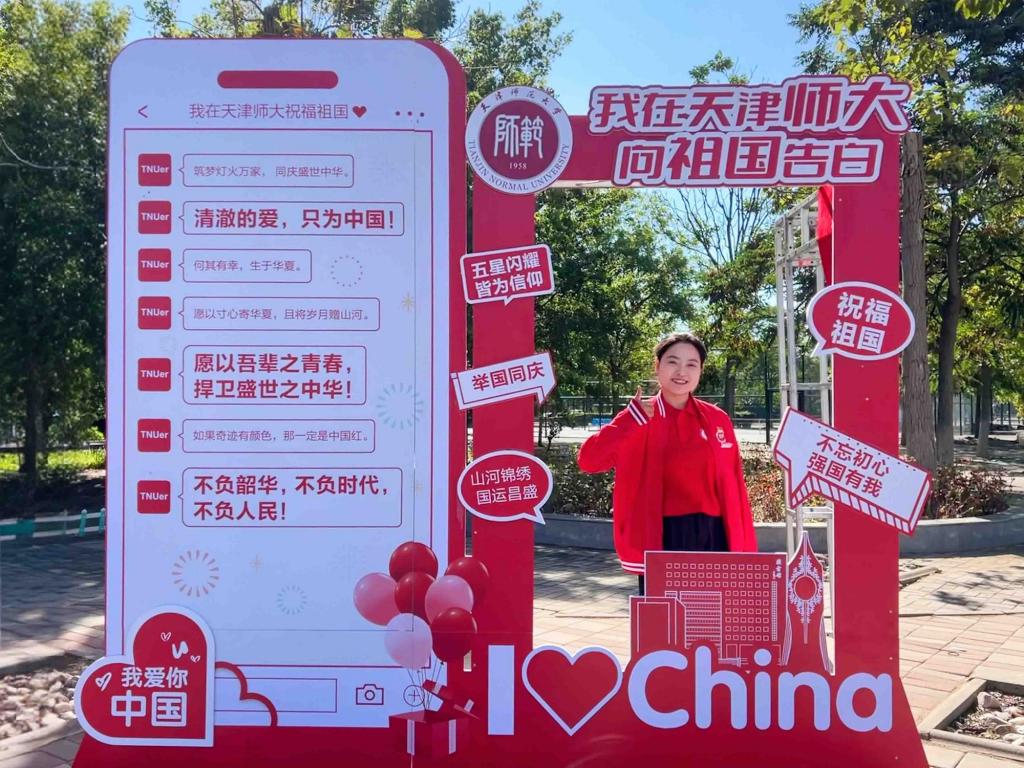 “祝福祖國繁榮昌盛,請黨放心,強國有我!”“我愛你,中國!”“清澈的愛,只為中國!”在校園內設置的地標主題打卡處,廣大師生通過愛國主義教育知識競答、“天師學工”愛國表白墻互動、愛國歌曲傳唱、“我和國旗合張影”“青春告白祖國”等現場活動,用質樸的方式表達對祖國的深厚情感和深情告白。