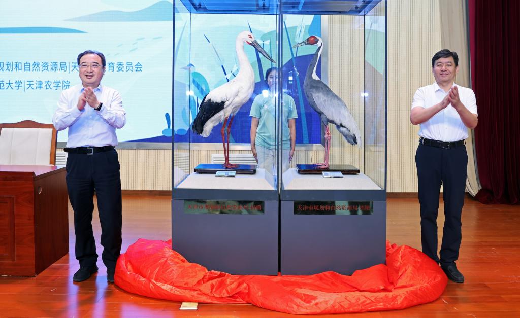 生命科學學院消息(通訊員 付博菲)9月13日上午,天津市規劃和自然資源局與天津市教育委員會“野生動物和林草植物標本”捐贈儀式在我校舉行。市規劃和自然資源局黨委委員、副局長、天津市林業局局長劉捷,市委教育工委、市教委二級巡視員王戈,天津農學院黨委書記李鑫出席并講話。我校黨委書記曲凱與劉捷為野生動物標本揭幕,李鑫與劉捷為林草植物標本揭幕。我校黨委常委、副校長陳玳瑋致辭。