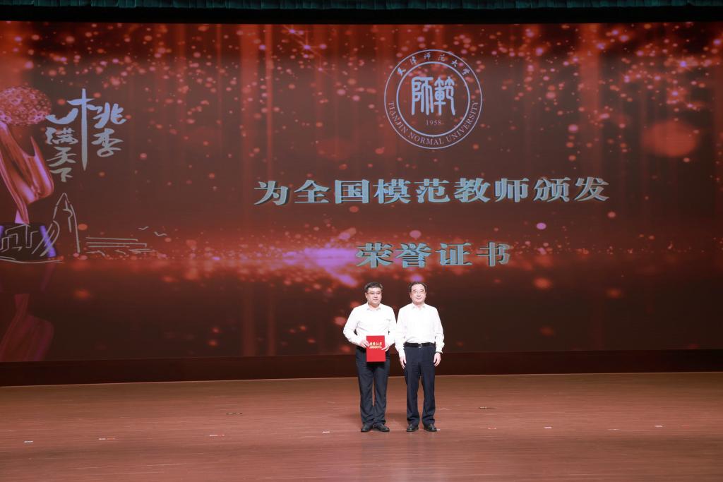 與會(huì)領(lǐng)導(dǎo)分別為從教三十年教師、榮休教師、天津師范大學(xué)優(yōu)秀教師、優(yōu)秀教育工作者、天津市高等學(xué)校教學(xué)名師、天津市級(jí)教學(xué)團(tuán)隊(duì)、天津市高校第十七屆青年教師教學(xué)競(jìng)賽獲獎(jiǎng)教師、天津市優(yōu)秀教師、天津市教育系統(tǒng)先進(jìn)集體、第九屆高等學(xué)校科學(xué)研究?jī)?yōu)秀成果獎(jiǎng)(人文社會(huì)科學(xué))著作論文獎(jiǎng)、入選國(guó)家級(jí)重大人才項(xiàng)目教師、全國(guó)模范教師、全國(guó)教育系統(tǒng)先進(jìn)集體等教師代表頒獎(jiǎng)。