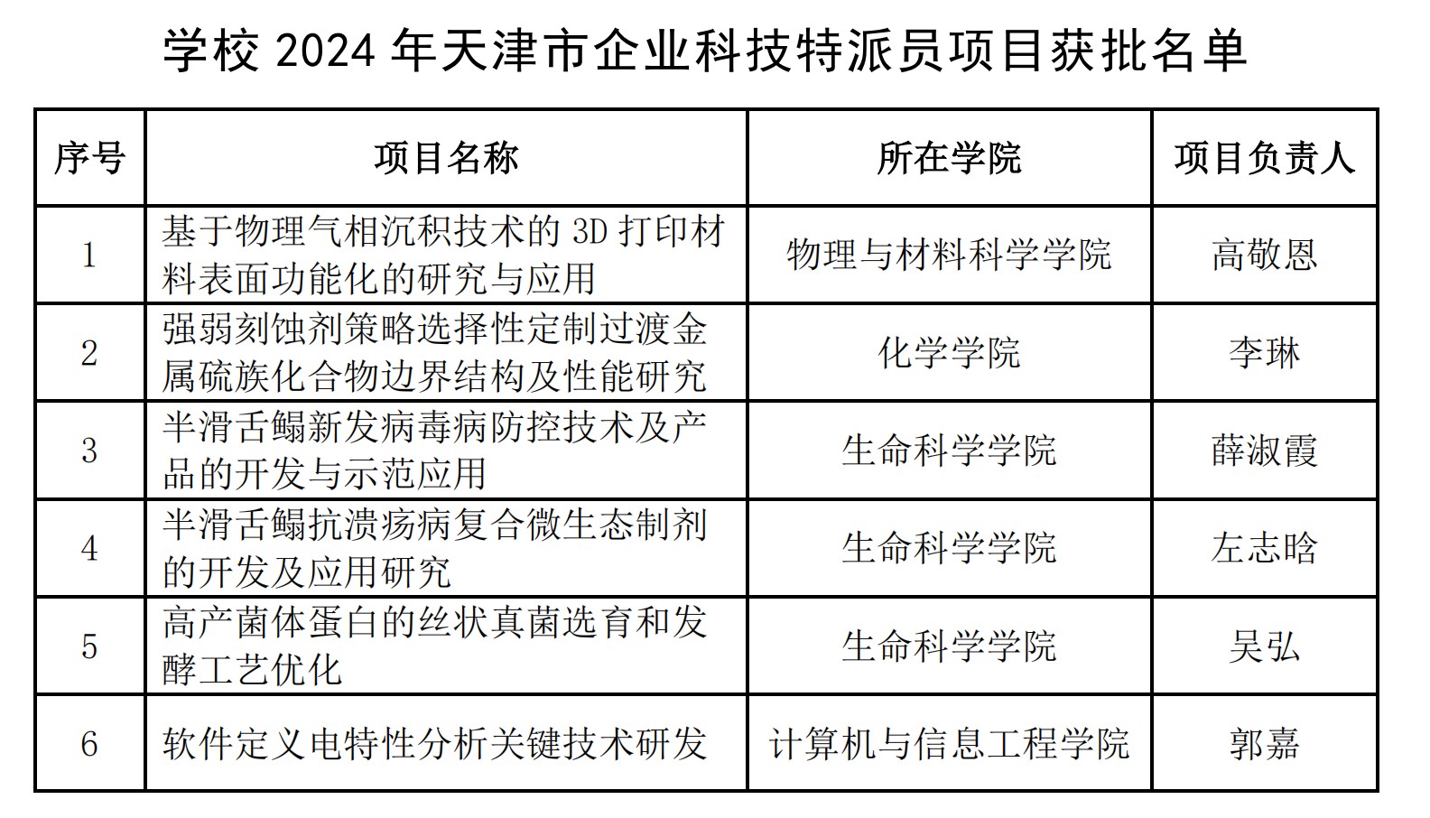 科學(xué)技術(shù)處消息(通訊員 朱虹)近日,天津市科學(xué)技術(shù)局公布了2024年天津市企業(yè)科技特派員項目評審結(jié)果。本次評審我校共申報7項,成功獲批立項6項,項目獲批數(shù)量創(chuàng)我校歷年新高。