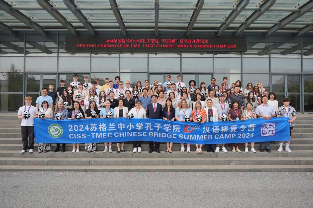 部校共建國際中文教育發(fā)展研究院消息(通訊員 趙英東)7月13日,蘇格蘭中小學(xué)孔子學(xué)院“漢語橋”夏令營開營儀式在我校隆重舉行。世界漢語教學(xué)學(xué)會(huì)會(huì)長、我校部校共建國際中文教育發(fā)展研究院院長鐘英華、市教委國際交流處處長王俊艷、蘇格蘭中小學(xué)孔子學(xué)院外方執(zhí)行院長麗薩·漢娜、中方院長趙燕燕、來華帶隊(duì)教師以及56名蘇格蘭學(xué)生出席開營式。市教委、我市蘇格蘭中小學(xué)孔子學(xué)院中方友好校代表、我校部校共建國際中文教育發(fā)展研究院、國際教育交流學(xué)院負(fù)責(zé)人參加。