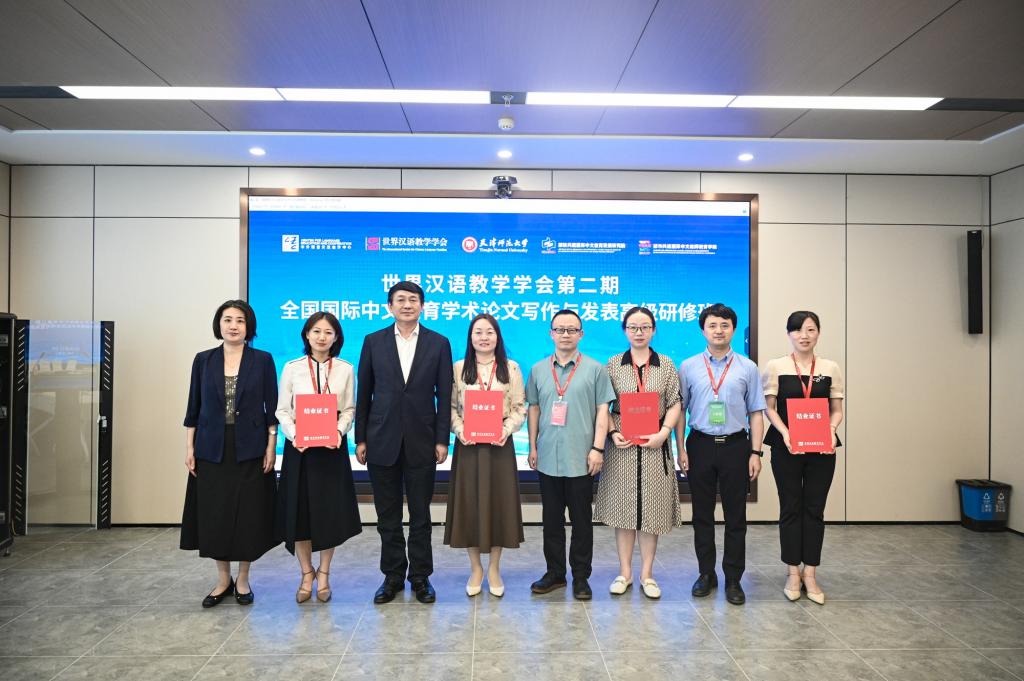 部校共建國際中文教育發(fā)展研究院消息(通訊員 趙英東)近日,由世界漢語教學(xué)學(xué)會(huì)(世漢學(xué)會(huì))主辦,世漢學(xué)會(huì)學(xué)術(shù)交流與出版專委會(huì)、我校部校共建國際中文教育發(fā)展研究院共同承辦的“第二期全國國際中文教育學(xué)術(shù)論文寫作與發(fā)表高級(jí)研修班”在天津師范大學(xué)舉辦。世漢學(xué)會(huì)會(huì)長、全國國際中文教育碩士專業(yè)學(xué)位教指委副主任委員、我校部校共建國際中文教育發(fā)展研究院院長鐘英華,教育部中外語言交流合作中心學(xué)術(shù)組織聯(lián)絡(luò)處處長尹冬民出席,世漢學(xué)會(huì)副秘書長、天津師范大學(xué)國際教育交流學(xué)院院長楊薇主持開班式。