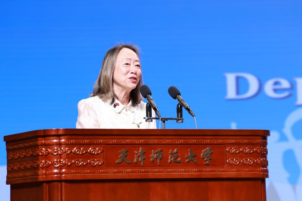 世界漢語教學學會會長、天津市政協科技教育委員會副主任、天津師范大學部校共建國際中文教育發(fā)展研究院院長鐘英華 致辭