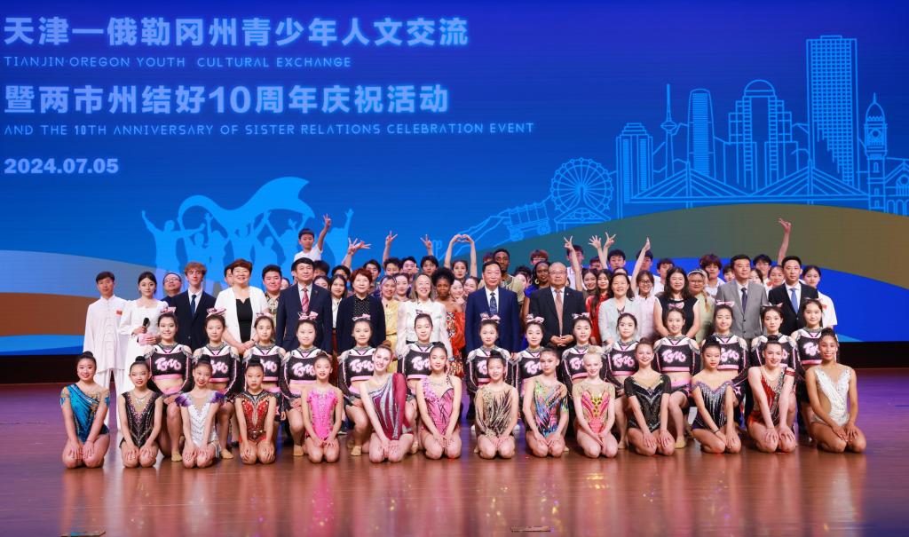 國際交流處消息(通訊員 毛雁)7月5日,天津—俄勒岡州青少年人文交流暨結好10周年活動在我校舉辦。天津市人大常委會副主任殷向杰,美國俄勒岡州副州務卿謝麗爾·邁耶,天津市人大教科文衛(wèi)委員會主任委員、天津市人大常委會教科文衛(wèi)辦公室主任王蕓,世界漢語教學學會會長、天津市政協科技教育委員會副主任、天津師范大學部校共建國際中文教育發(fā)展研究院院長鐘英華,天津市人民對外友好協會副會長黃春艷,天津市教委二級巡視員張健青,天津市體育局二級巡視員吳衛(wèi)鳳,我校黨委常委、副校長陳玳瑋,俄勒岡州代表團全體人員、我校相關部門負責人以及師生代表等400人參加。活動由黃春艷主持。