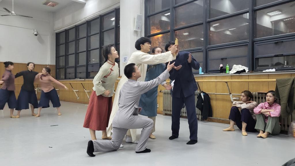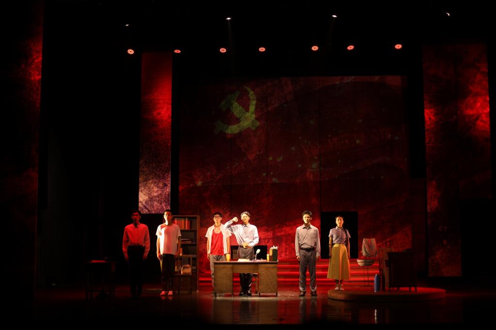 群舞《覺悟的宣言》以周恩來總理在覺悟社成立時寫下的一段話為題——“我們全是學生,絕不敢說已經‘覺悟’,我們的決心就是齊心努力向‘覺悟’道上走。努力!奮斗!”這段話也刻在了天津覺悟社紀念館的墻壁上。該作品主要描繪了以周恩來為代表的覺悟社成員在革命年代進行斗爭的英勇事跡,其不屈的精神為黑暗的監獄生活帶來了曙光。作品運用了以群舞為主的表現形式,結合獨舞、雙人舞的交叉與貫通進行角色的區分并按照整體敘事結構推進故事發展。