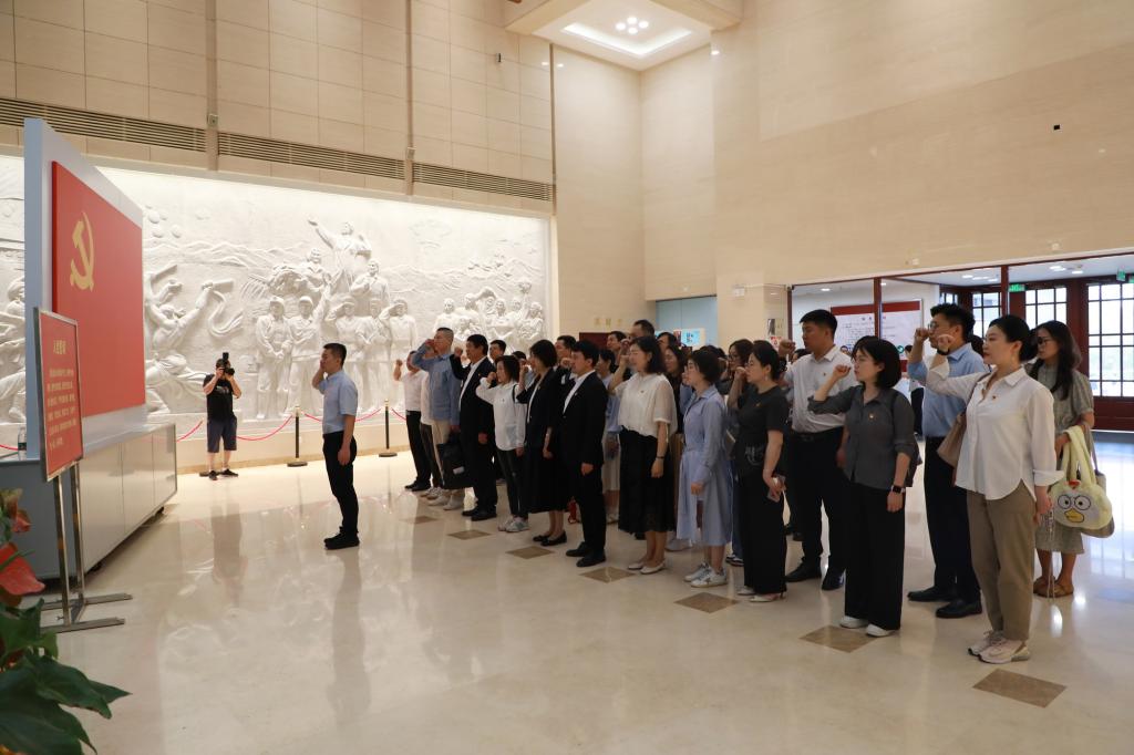 語合中心第一、第七黨支部與我校國際交流黨委教師干部黨支部黨員干部前往周恩來鄧穎超紀念館參觀學習。參觀前,全體黨員集體重溫入黨誓詞。