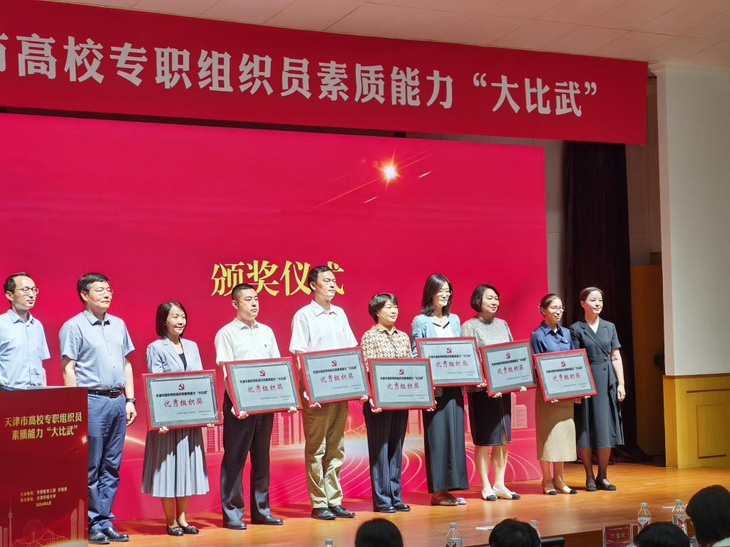 黨委組織部消息(通訊員劉菲)6月14日下午,在市教育工委、市教委主辦的天津市高校專職組織員素質能力“大比武”中,我校文學院專職組織員戴蕾榮獲一等獎,外國語學院專職組織員王伊杰榮獲二等獎,我校榮獲優秀組織獎。
