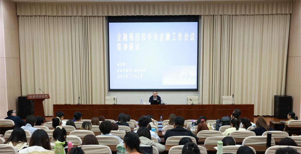 座談會后,田利輝為我校師生作了《金融強國和中央金融工作會議精神解讀》的學(xué)術(shù)講座。經(jīng)濟學(xué)院、管理學(xué)院、外國語學(xué)院的200余位師生參加了此次講座。