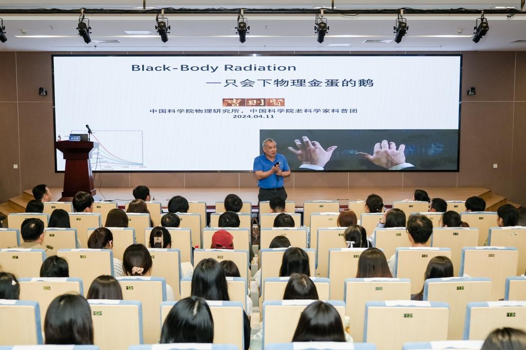成立大會后,京津冀物理科普教育基地聯盟開展了系列活動。聯盟“科普大使”曹則賢以《黑體輻射:一只會下物理金蛋的鵝》為題,為師生們帶來了精彩的物理科普教育主題報告。黑體輻射研究在理論物理領域具有重要地位,曹老師通過深入淺出的方式,生動形象地帶領師生們梳理了黑體輻射研究的歷史邏輯,展現了學問創造者的思想歷程,為師生們提供了一次多維度、全景式的物理學習體驗。
