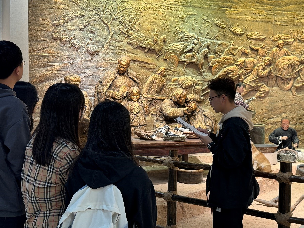 主展館陳列展由序廳、戰役決策、戰役實施、人民支前、英烈業績、偉大勝利六個部分組成,一幅幅歷史珍貴圖片,一件件斑駁的老物件,一幕幕戰斗情景再現,全面、真實地還原了平津戰役的各種歷史細節,展現了中國共產黨領導人民解放軍取得平津戰役偉大勝利的壯闊史詩。在講解員的指引下,全體同學仔細觀看展覽,不時在展柜邊駐足觀看,深刻感受到了中國共產黨人和先輩們追求理想的堅定信念和不怕犧牲、奮勇向前的革命精神。